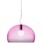 Kartell-merkin FL/Y-riippuvalaisin yksinkertaisella muotoilulla epätäydellisellä, puolipallon muotoisella lampunvarjostimella kierrätetystä PMMA:sta eri väreissä suurella raolla alareunassa luomaan alaspäin kohdistettua valoa.