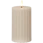 Star Trading -merkin Flamme Stripe -pöytäkynttilä vahasta aallotetulla, raidallisella pinnalla ja aidonnäköisellä, lämpimällä valkoisella liekillä miellyttävällä hehkulla.