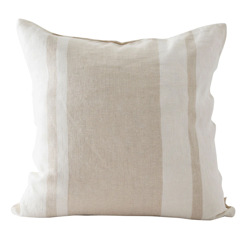 Se on valmistettu pehmeästä, entsyymipestystä pellavasta, ja siinä on ihanan tuntuinen ja ajaton raidallinen kuvio, joka tuo sohvalle tai nojatuolille luonnetta ja lämpöä. Jokaisessa tyynynpäällisessä on uniikkeja siirtymiä kudonnassa, mikä tekee siitä yksilöllisen ja viehättävän lisän sisustukseesi.