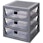Room Copenhagen -merkin hylly käytännöllisellä muotoilulla polypropeenista kolmella tavaroiden säilytykseen täydellisellä läpikuultavalla laatikolla. Siinä on Lego-pohja ylhäällä.