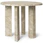 Ferm Living -merkin Taula-sivupöytä olohuoneeseen täydellisellä kauniilla muotoilulla marmorista uniikilla, eloisalla pinnalla.