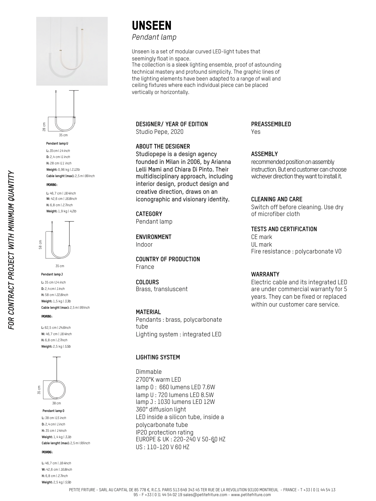 Riippuvalaisimessa Petite Friture-tuotemerkiltä on elegantti muotoilu hämmästyttävällä tekniikalla ja kelluvalla tuntumalla. Se on himmentävä ja siinä on sisäänrakennettu LED. Siinä on kaareva muoto yksityiskohdilla messingistä. Luo täydellinen yhdistelmä sekoittamalla samaan kokoelmaan kuuluvien kappaleiden kanssa.