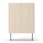 Vogue 64 -kaapin runko on MDF-levyä, joka takaa vakaan ja kestävän rakenteen, ja neljä siroa jalkaa antavat kaapille kevyen ja ilmavan tunnun. Minimalistista muotoilua korostavat kaksi ovea, jotka on varustettu pehmeällä työntöominaisuudella. Näin et tarvitse näkyviä kahvoja, vaan saat sen sijaan siistin, virtaviivaisen ilmeen, joka sopii moneen eri sisustustyyliin - modernista klassisempaan.